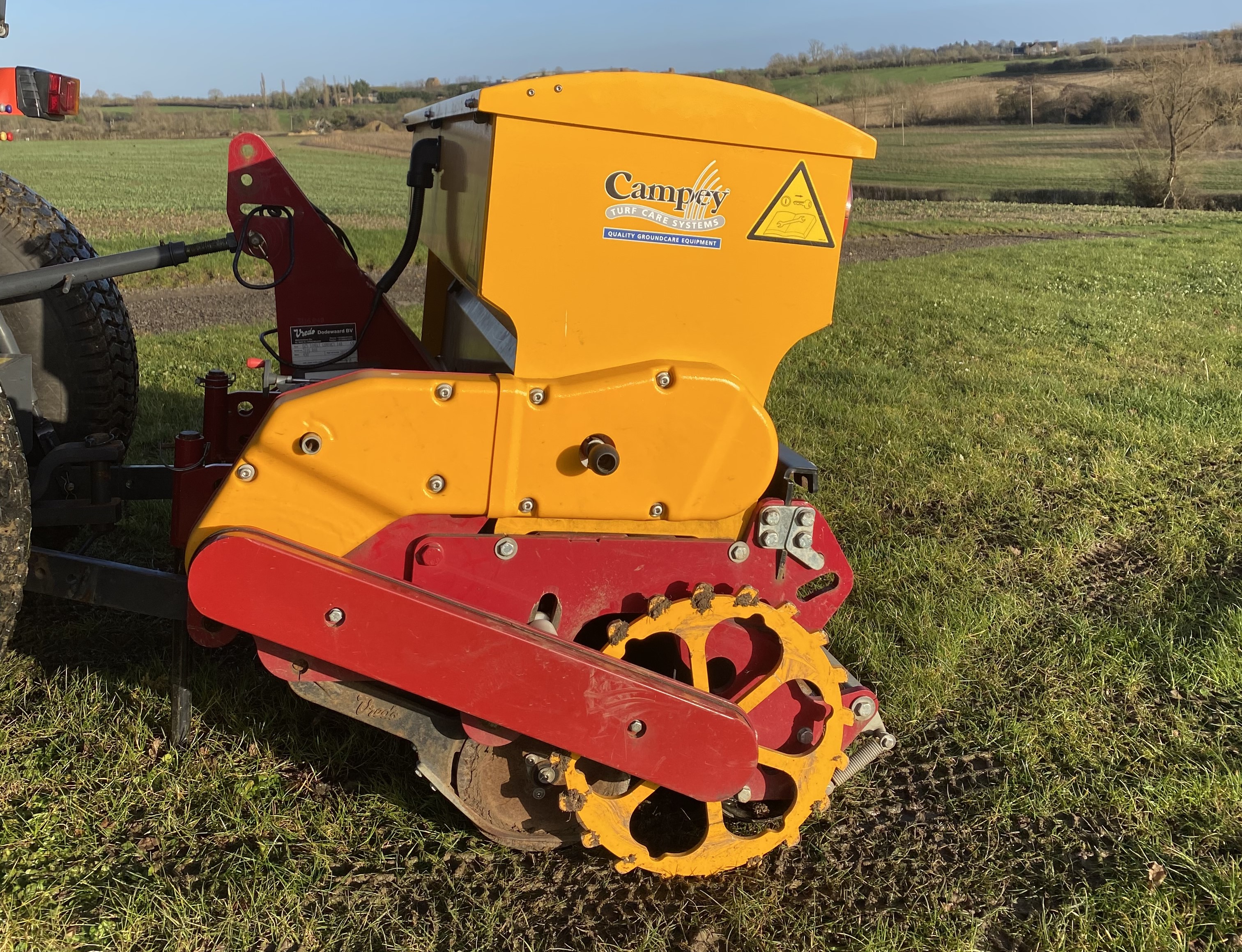 The Vredo Double-Disc System ensures precise seed placement in narrow slots, with a compaction roller for optimal seed-to-soil contact. Its 3.5 cm row spacing and independently sprung discs promote a dense, healthy sward with up to 96% germination, thanks to adjustable seeding depth from 0 to 25 mm.