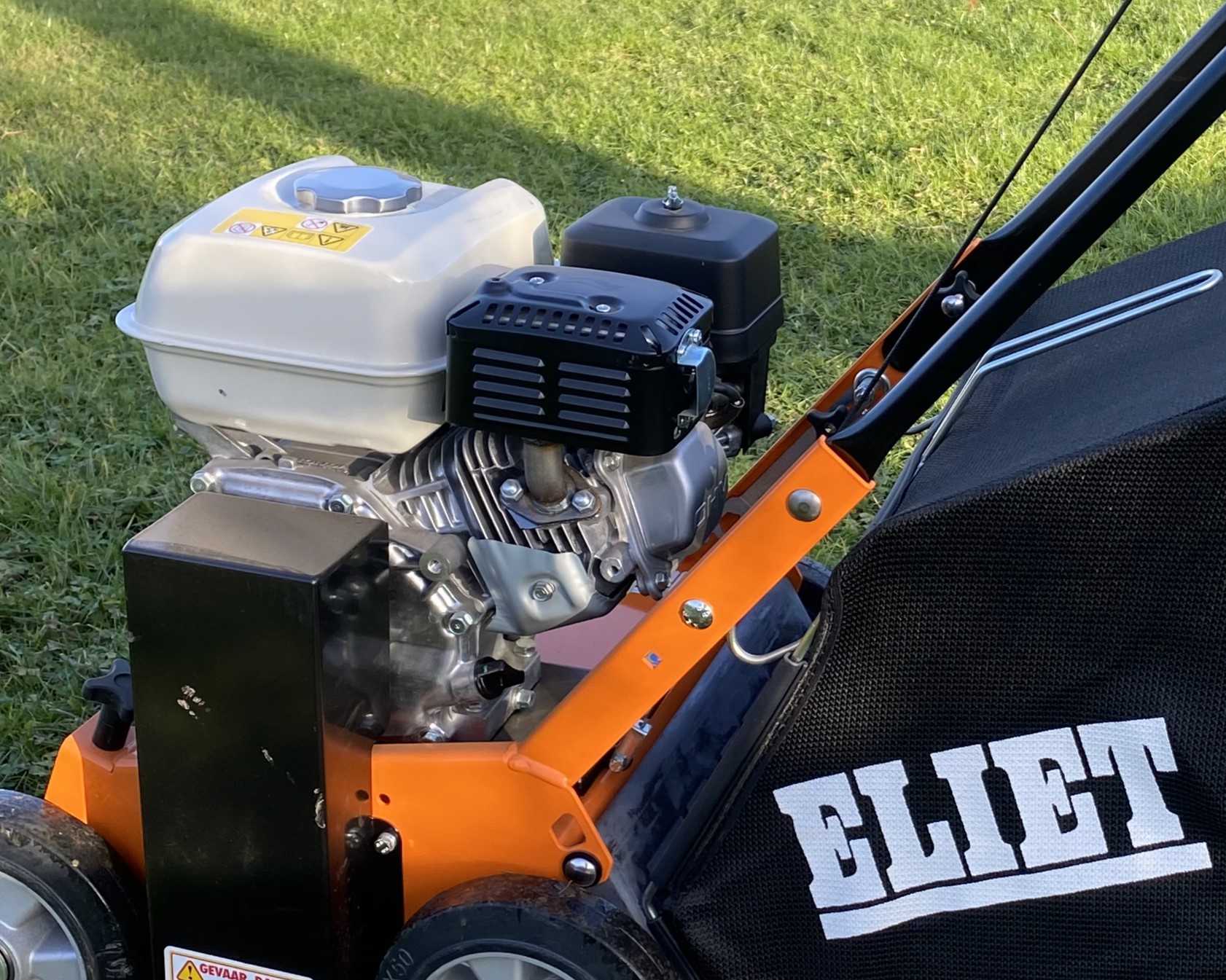 Walk behind lawn scarifier with collection box